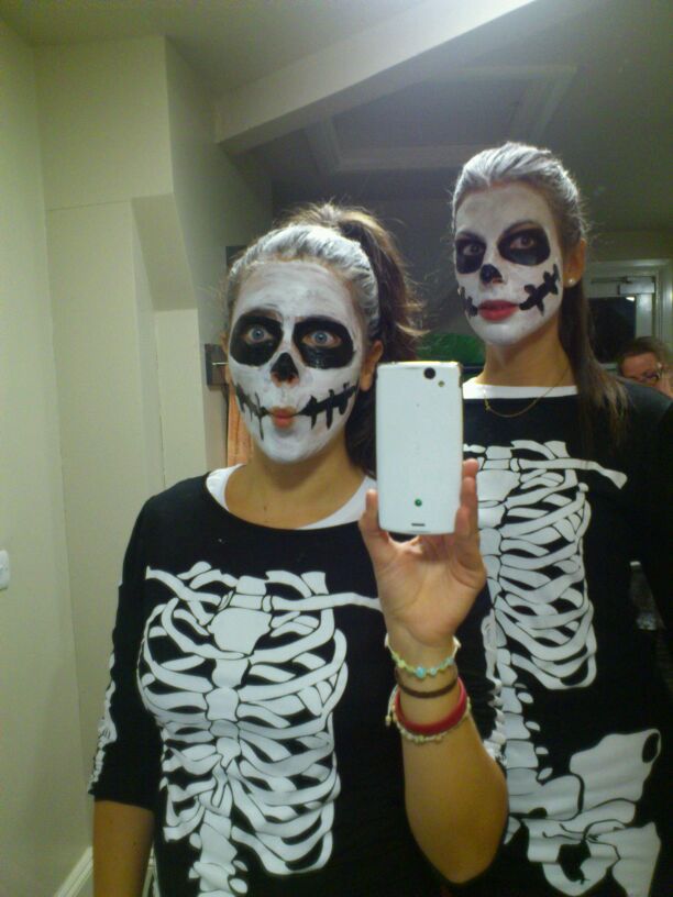 My youngest daughter (at the back) and a friend celebrating Halloween in London, last night.