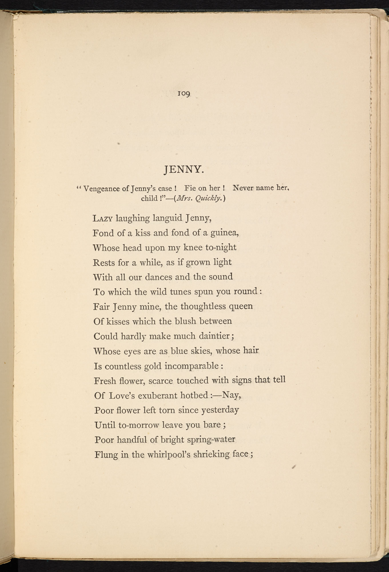 Most of the characters I have invented are based on characters created by other writers, or they are based on real writers’ lives. In some instances I’ve changed their names. For example, Robert Browning is the inspiration for Mr. Greenwood. Jenny Rosset is based on Dante Gabriel Rossetti’s poem Jenny. The portrayal of the use and abuse of opium is based on de Quincey’s Diary of an Opium Eater. Jane’s first novel is based on Rebecca.