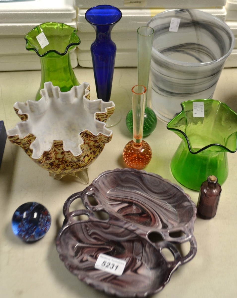 I didn’t know anything about slag, but I looked it up on Saint Google, and found out it was also commonly known as Malachite glass, which is pressed glass with coloured streaks to create a marble effect.