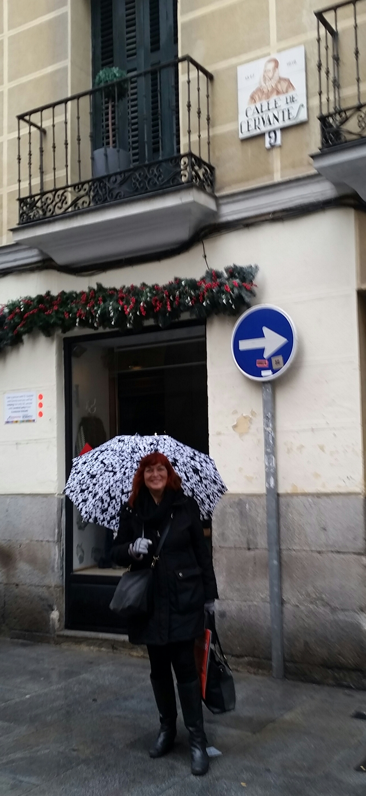 The house of the playwright Lope de Vega is in the same street, Calle Cervantes, which you can see at the top. Here I am standing by Lope’s House.