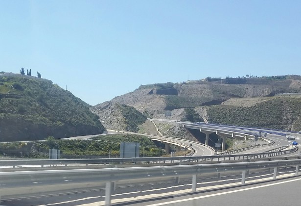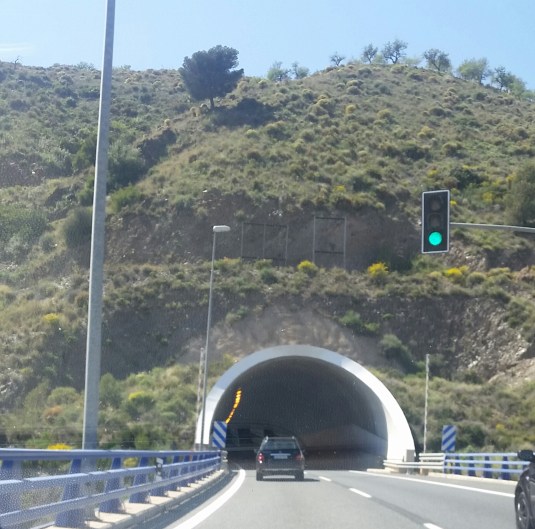 Almost desert-like hills of Almería The Mediteranean Sea to the left. There were plenty of tunnels carved into the mountains.