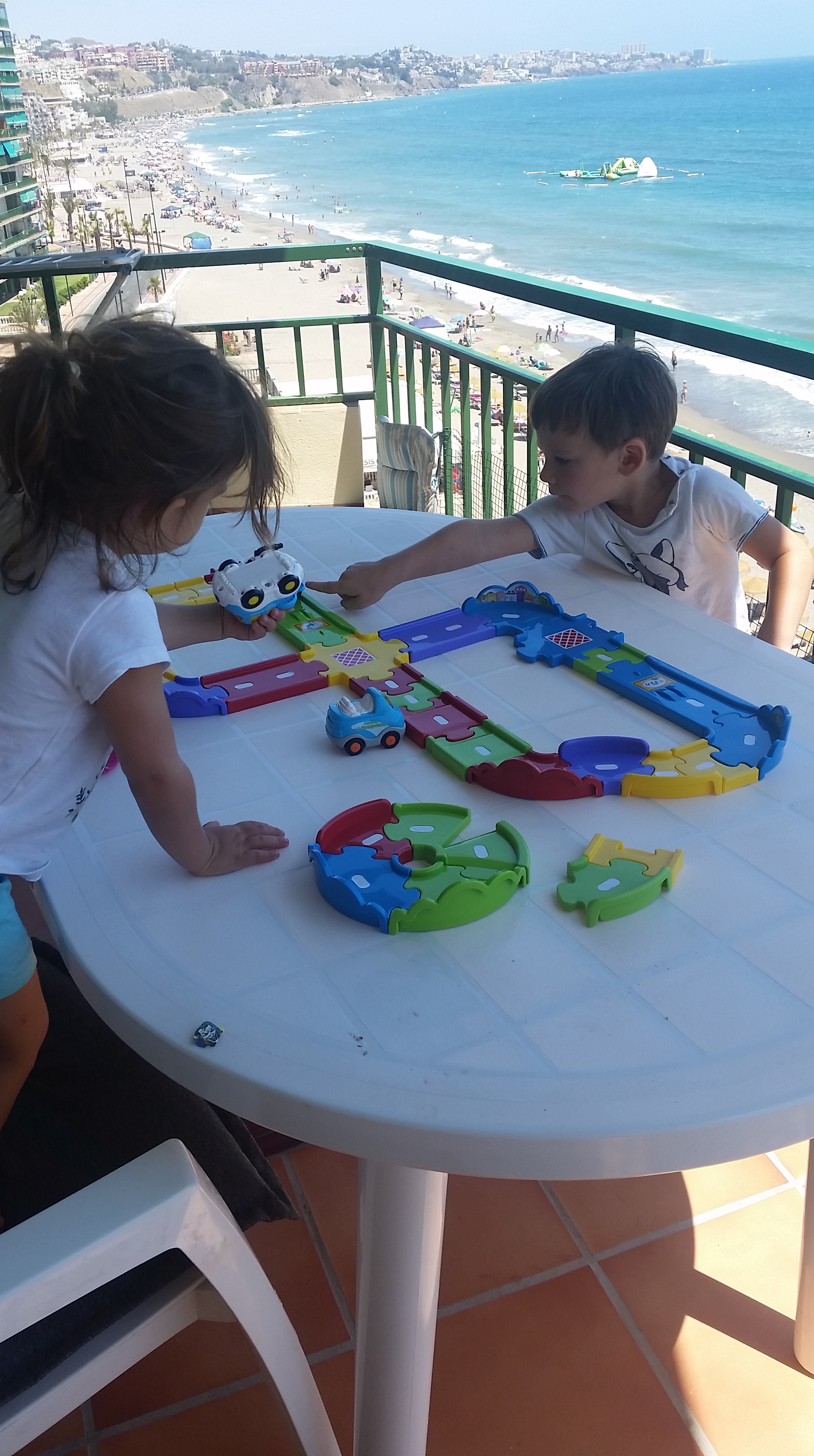 After transporting sand, it’s time to get busy in the terrace preparing tracks for racing cars…