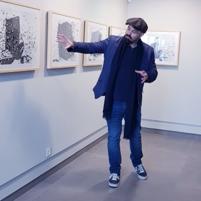 I was impressed by Fernando Romero’s work, and I was intrigued by the combination of a permanent, recognisable background, splattered with ephemeral, abstract, blotches on. over, and around the solid geometric shapes.