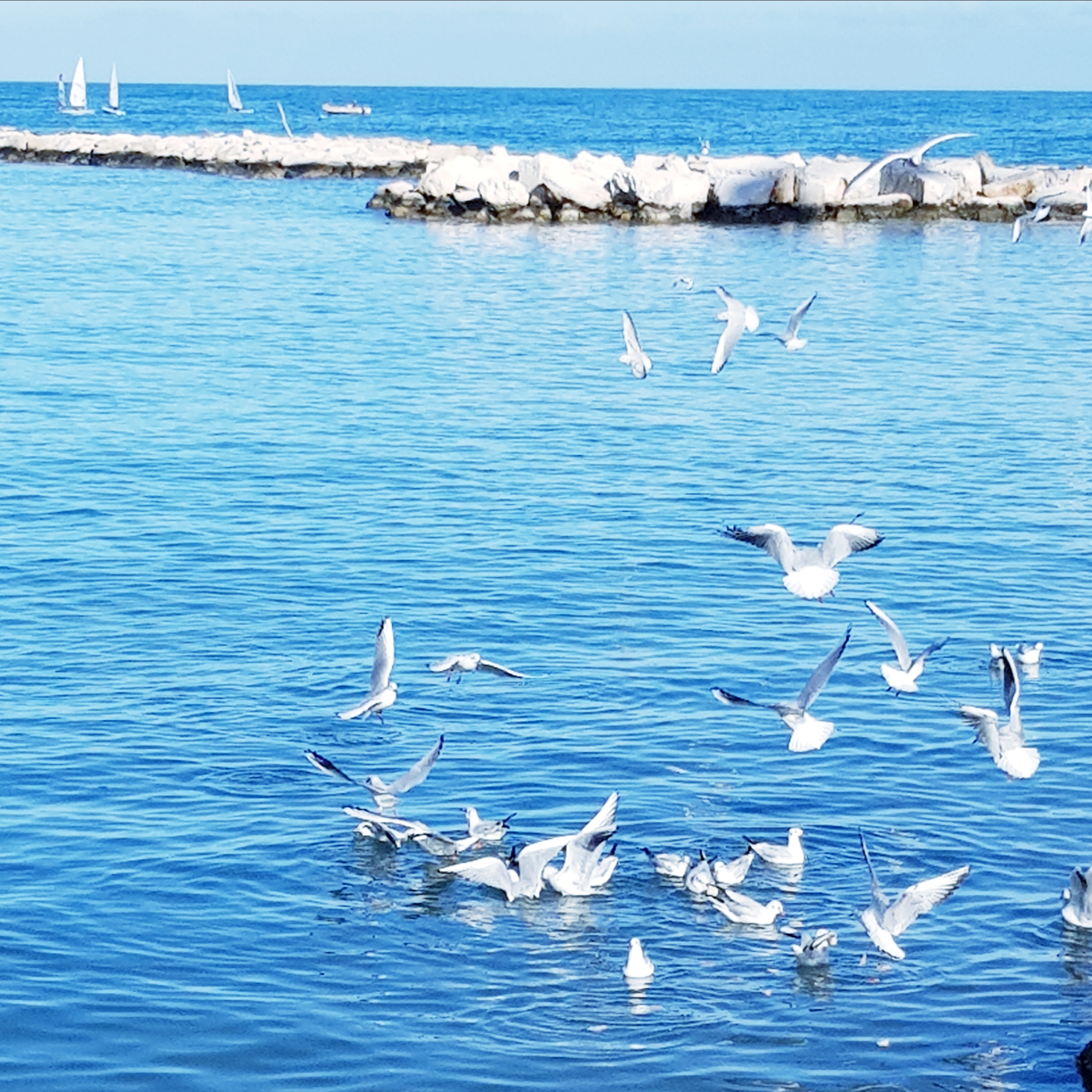 Yes, they look lovely at a distance, but seagulls are so noisy and voracious that sometimes I remember Hitchcock’s Birds and I shudder!