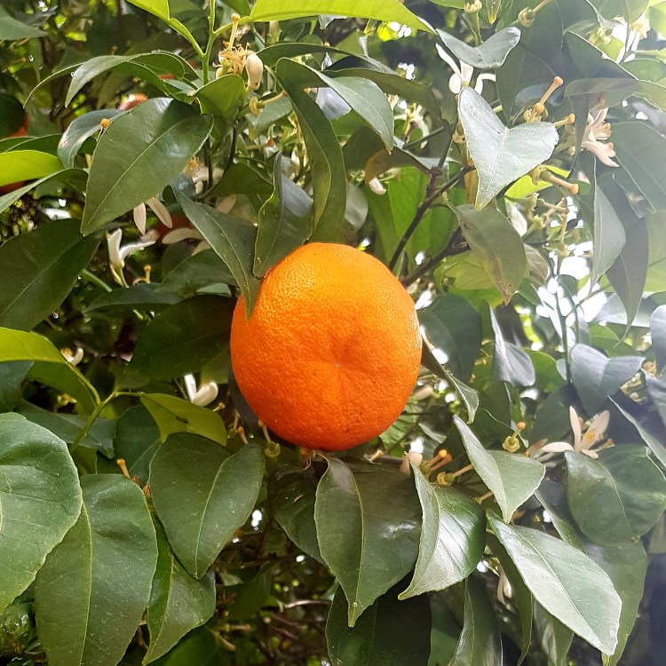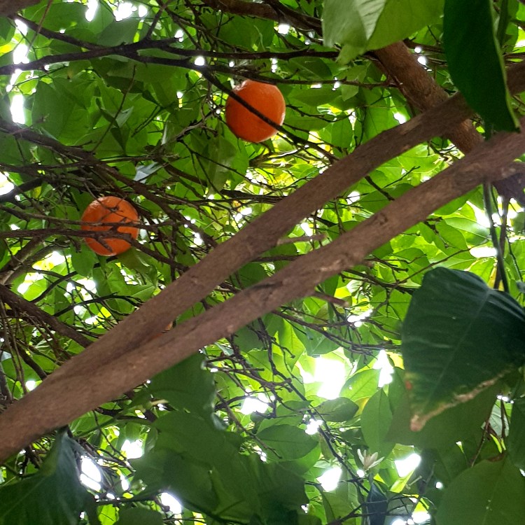 Oranges hang low.