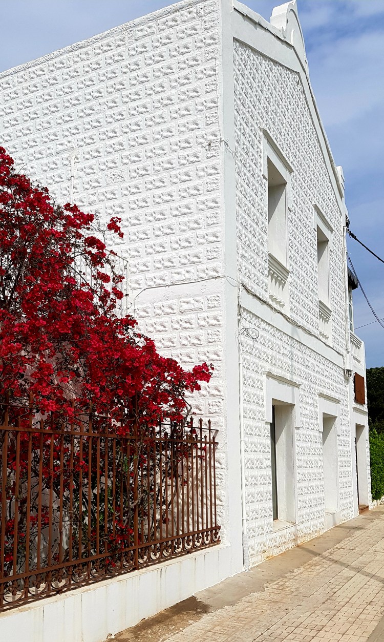 White walls, red flowers,