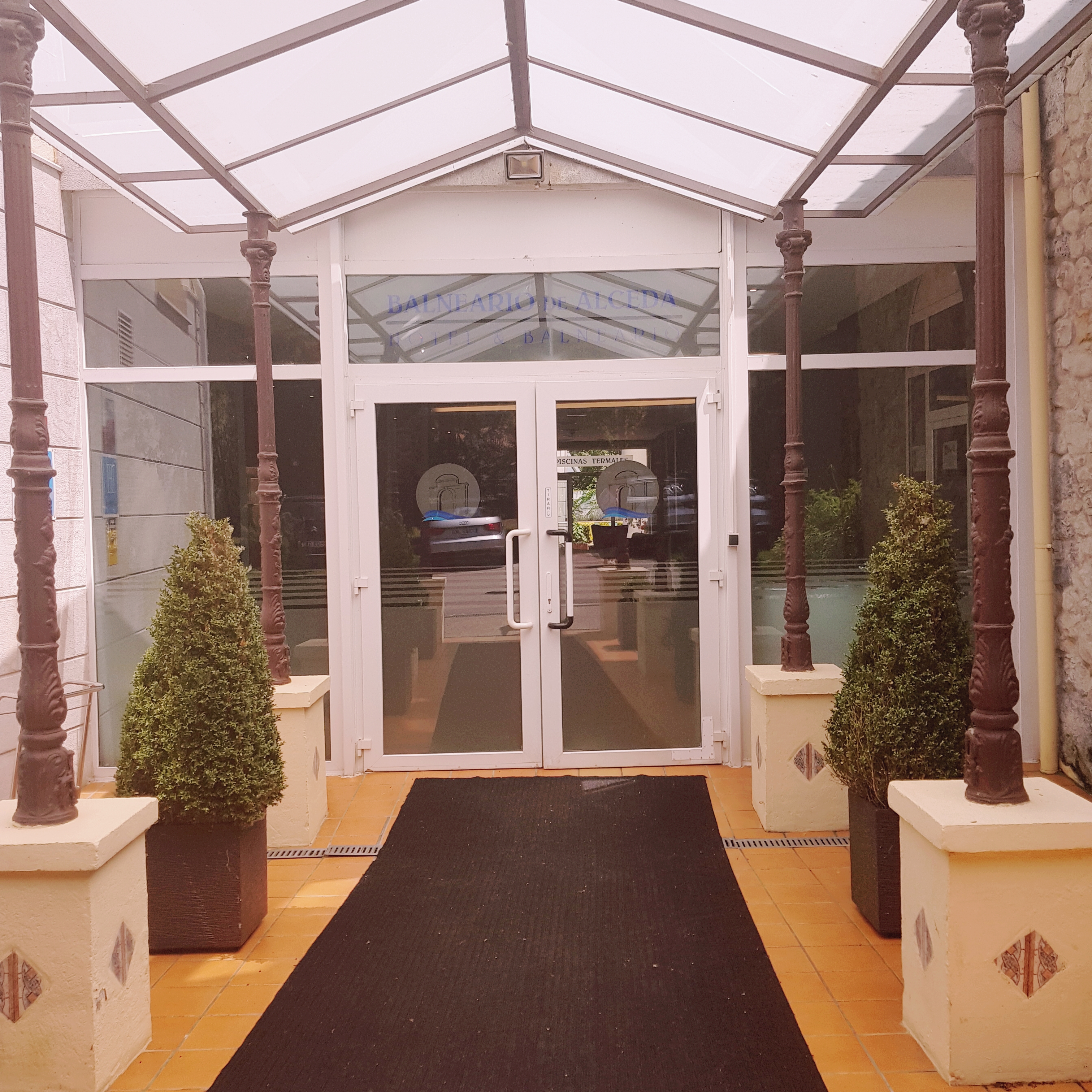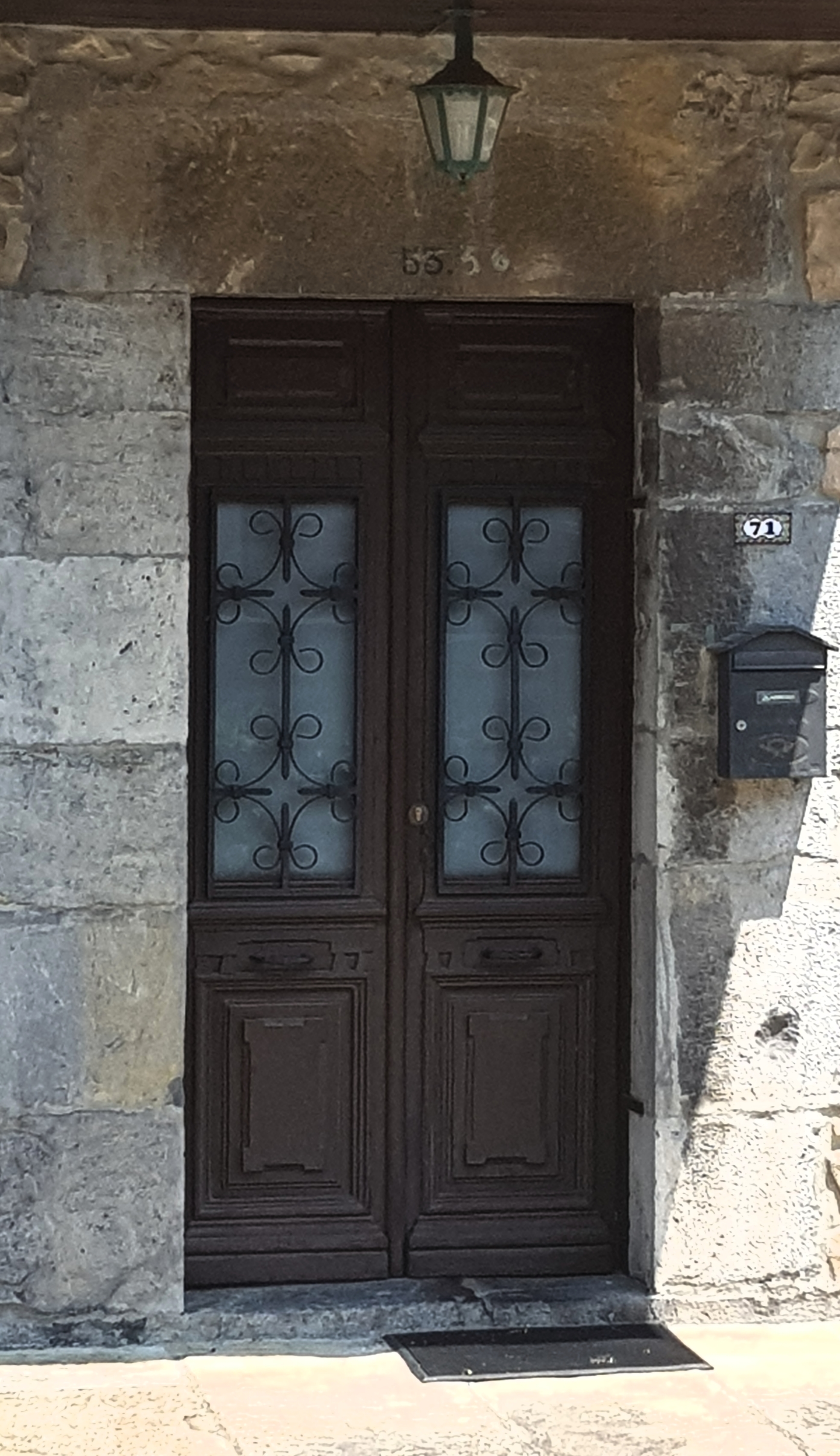 You can also rent an apartment in this refurbished country house very near the palace. I couldn’t resist taking a photo of the very modern, glass door, below.