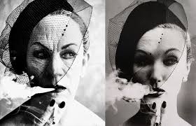 Day 14 poem, ‘Don’t You Dare’, was inspired by a photograph of John Malkovich by Sandro Miller I recently saw at an exhibition. The original photograph, on the right, is Smoke and Veil, Paris Vogue (1958) by William Klein. More information here