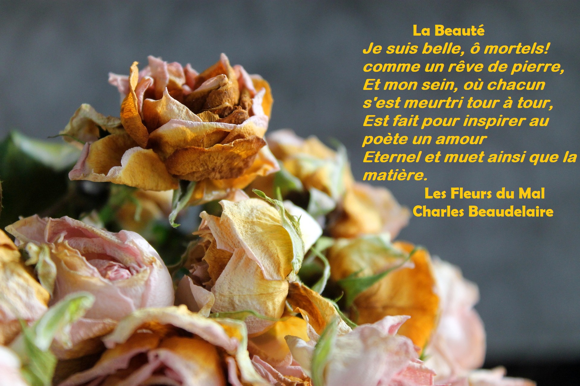 I’ll never forget how impressed I was the first time I read Les Fleurs du Mal, while working as an au pair and studying French in Amiens, France. I remember thinking I was so glad and fortunate that I could read it in French: ‘Je suis belle, ô mortels! comme un rêve de pierre,’ from his poem La Beauté, pure magic, but I digress…