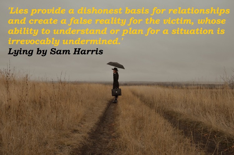 According to Neuroscientist, Sam Harris in his concise and brilliant book Lying, ‘To lie is to intentionally mislead others when they expect honest communication. People lie so that others will form beliefs that are not true.’