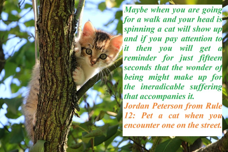 I studied and admired the French existentialists in my youth, so I wasn’t distressed by this book’s pessimism, nevertheless I find Peterson’s proposals more optimistic and useful, because although he acknowledges the inevitability of struggle and strife, he implicitly rejects life’s ‘absurd’ nature by offering us twelve ways to make sense of life so it becomes ‘less chaotic’.