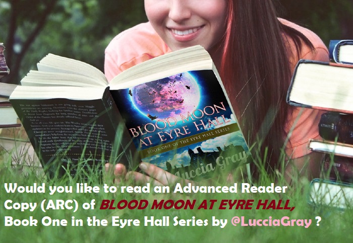 Finally, if any of you would like to be the first to read Blood Moon at Eyre Hall, Book One in The Eyre Hall Series, please let me know, so I can get in touch personally, either in the comments below, or email me at luccia.gray@gmail.com so I can send you an ARC.