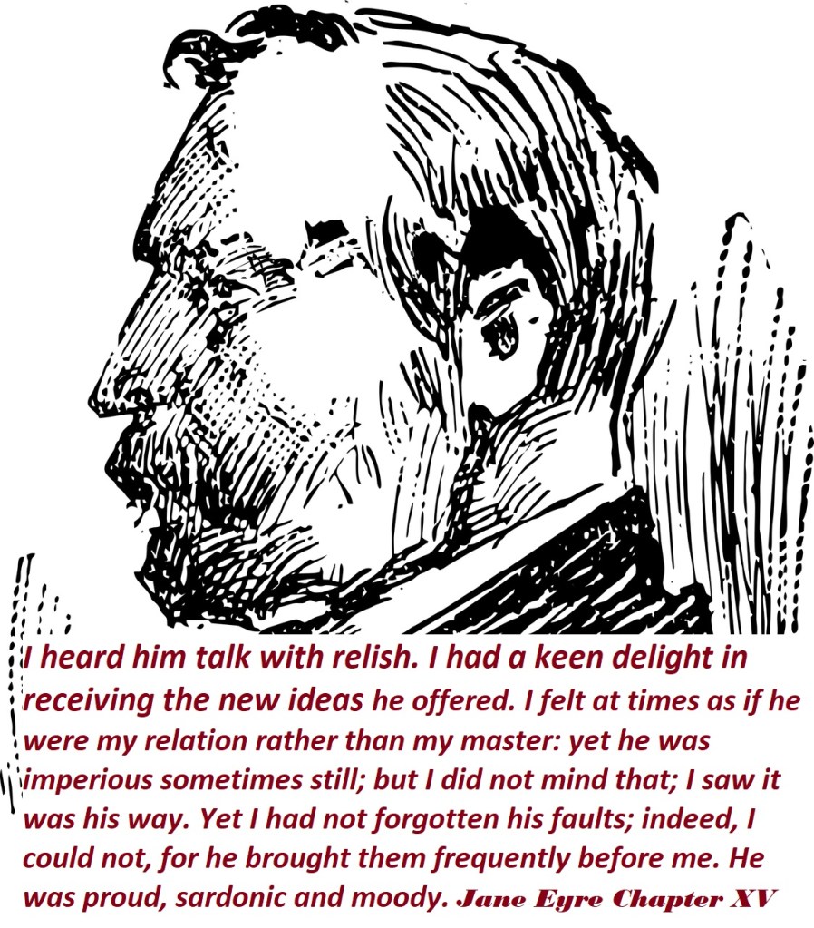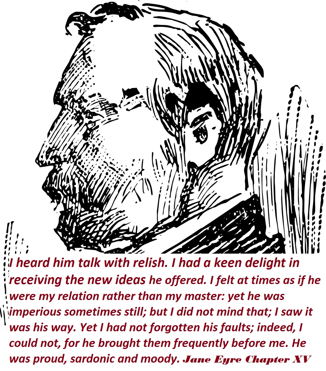 Jane starts this part of the chapter by telling us how Mr Rochester is now kind and courteous towards her, frequently summoning her company in the evenings. She is obviously impressed by his conversation, which must stroke his ego enormously.