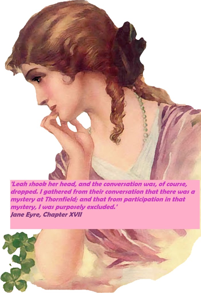 ‘Leah shook her head, and the conversation was, of course, dropped. I gathered from their conversation that there was a mystery at Thornfield; and that from participation in that mystery, I was purposely excluded.’