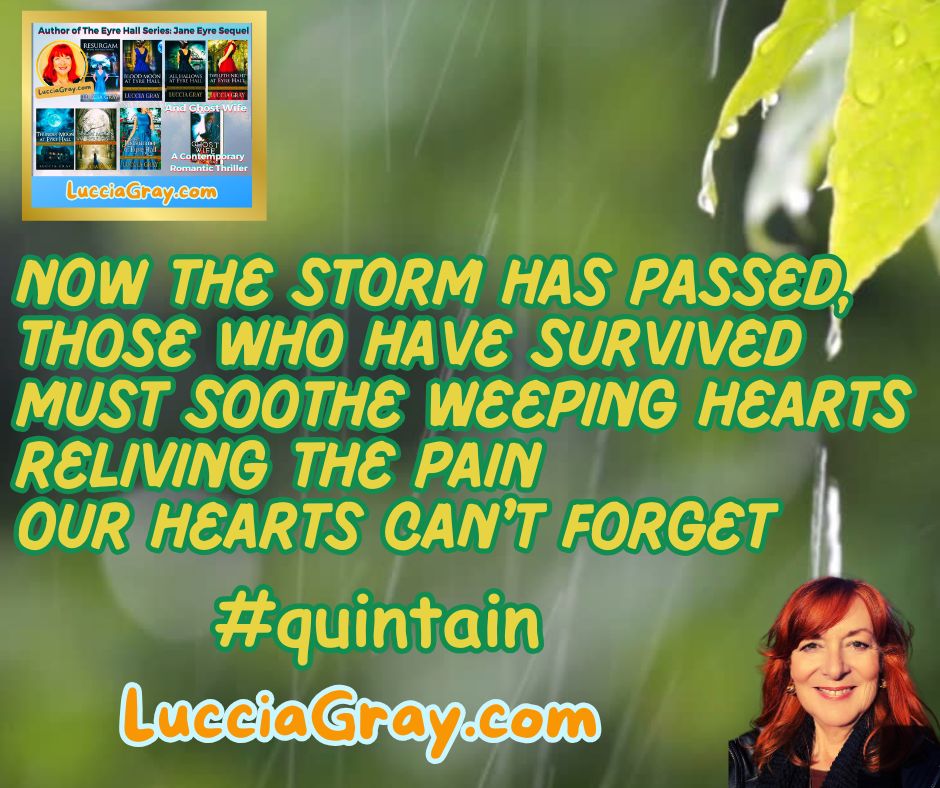 The lessons I learned during that time are ones I hope I’ll never forget, although my memories are often selective and choose to forget the pain. But I want to remember what I learned and how the lessons were learned. Now the storm has passed, those who have survived, must soothe our weeping hearts, reliving the pain, hearts dare not forget. I’ve grown wiser, kinder, and less careless with my fragile feelings. I’m more grateful for the life I feel fortunate to still have.