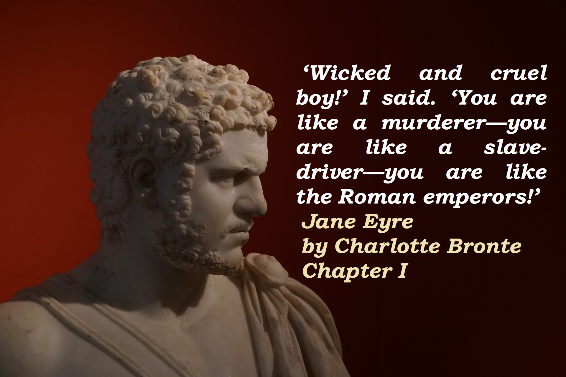 We learn that Jane is an orphan who lives with her unloving aunt and nasty cousins, much like Cinderella, but with a bullying boy added to the picture. We also know she is an intelligent child who reads and understands books for adults about Roman emperors and birds.
