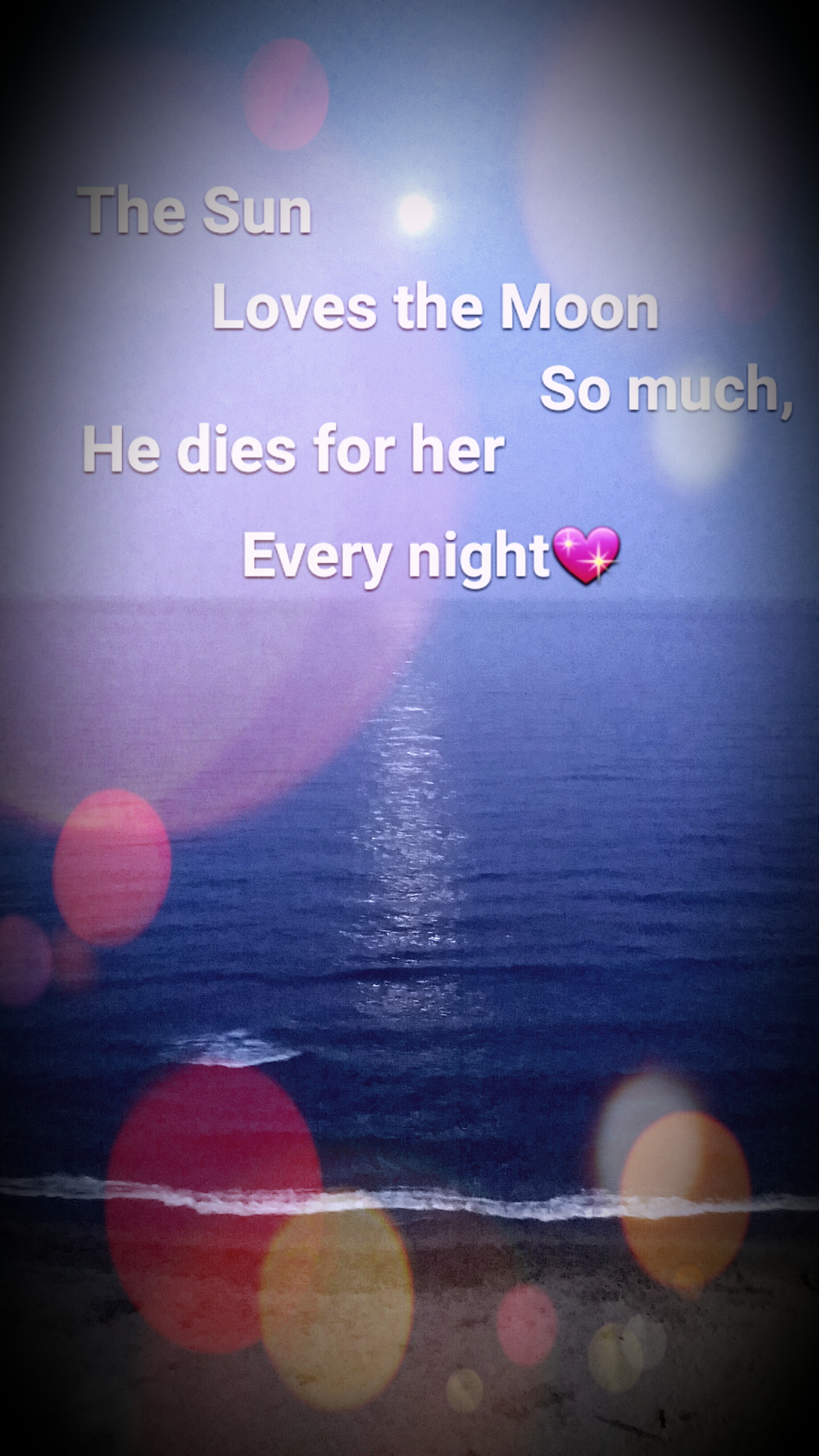 When the sun forgot to shine on the moon she wept, but as he remembered she danced on the waves and grew in the sky.